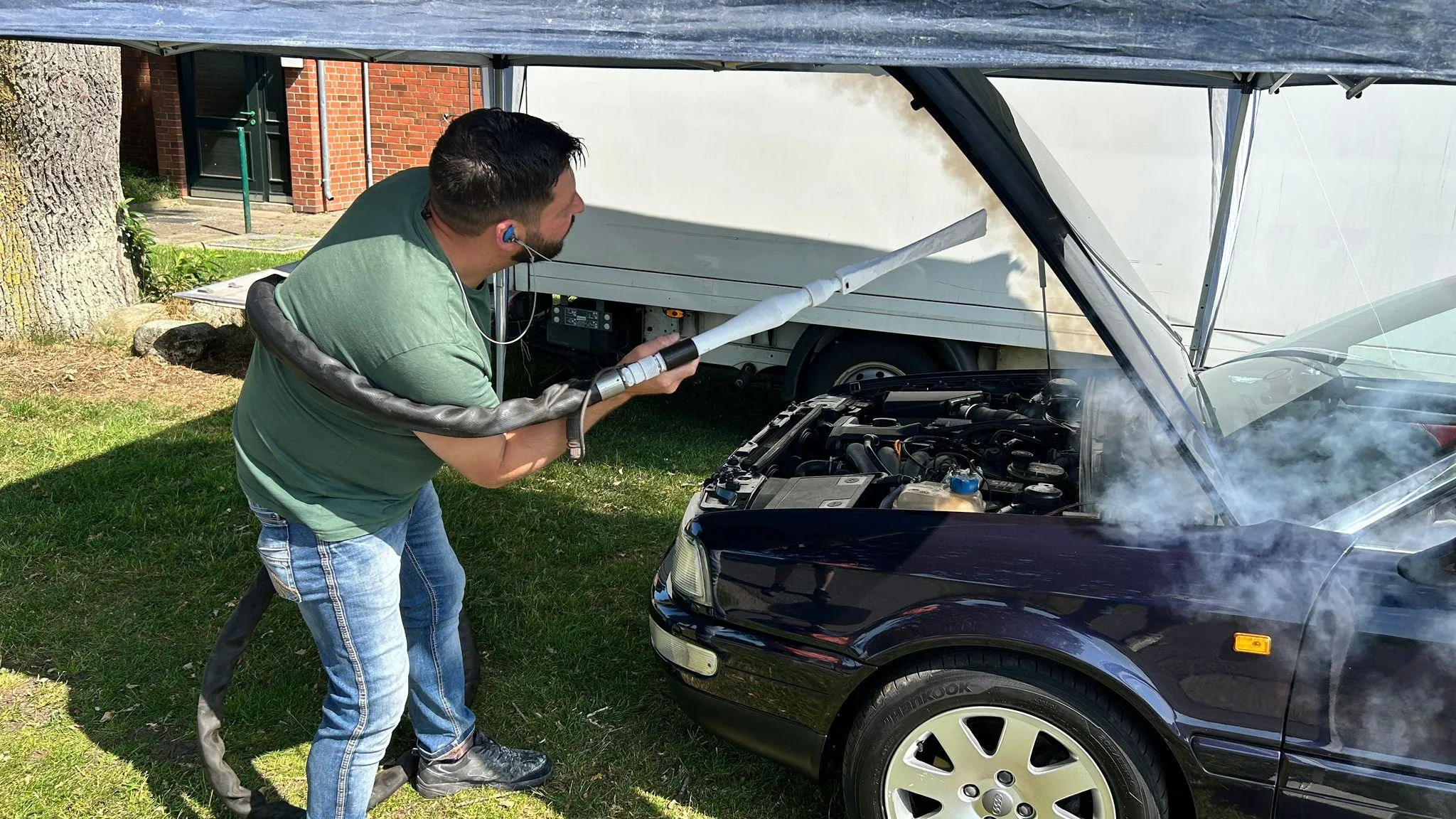 Alte Schätze verdienen die beste Pflege – Motorreinigung mit Trockeneis beim Audi-Treffen in Westerholz